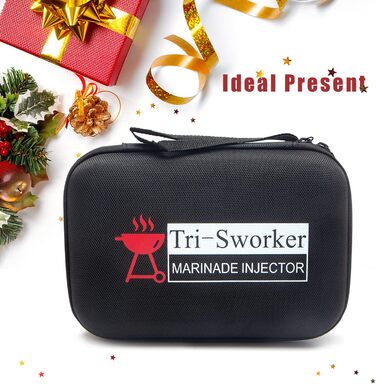 Набір інжектора для м'яса TriSworker з кейсом і 4 голками для маринаду, ідеально підходить для ін'єкції маринаду в індичку, м'ясо, бріскет; 57 г; у комплекті папір та електронна книга (PDF)