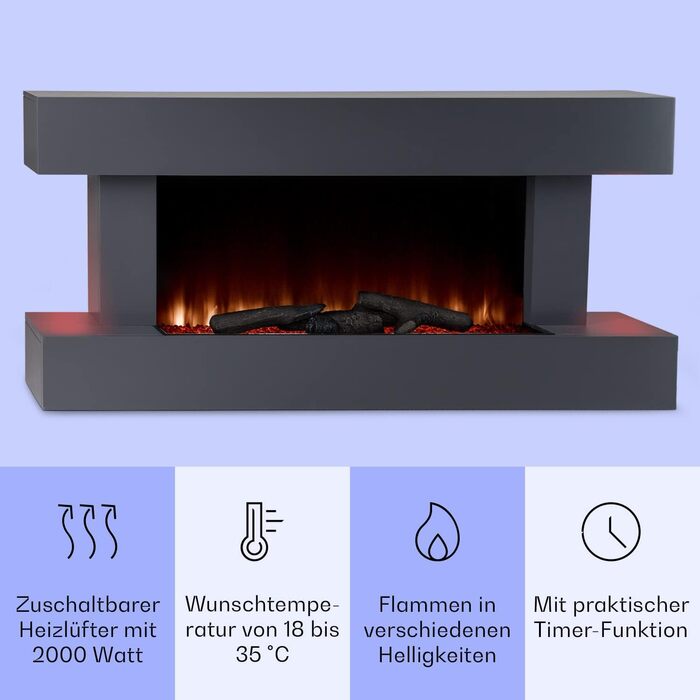 - ФАЛЬШИВИЙ КАМІН З КЕРУВАННЯМ WIFI: За допомогою пульта дистанційного керування або за допомогою програми Klarstein ви можете легко вмикати та вимикати ефект потріскування та світло на цьому енергозберігаючому світлодіодному електричному каміні, який є електричним, у будь-який час з дивана.
