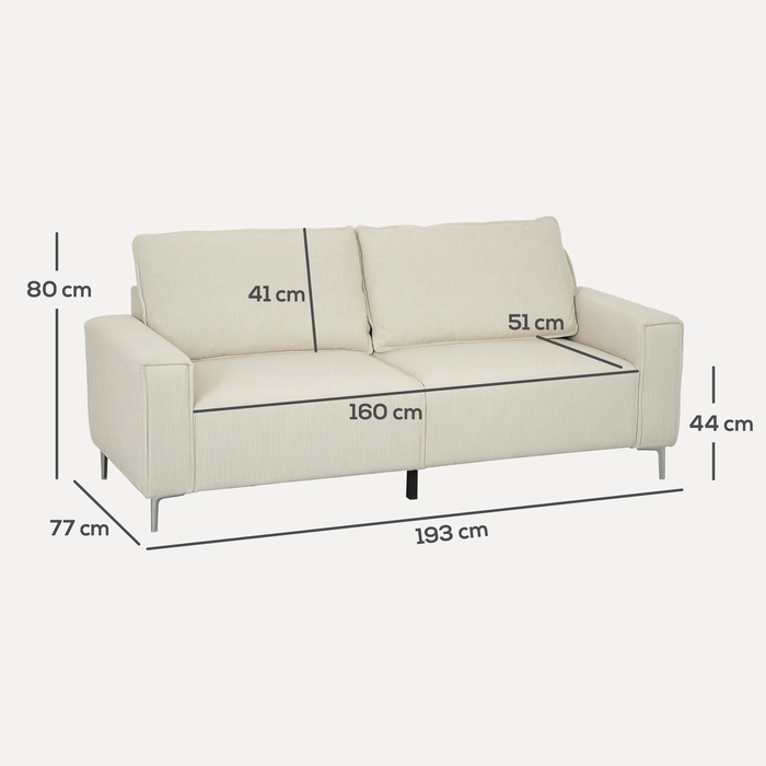 Опис HOMCOM 3-місний диван, кушетка з підлокітниками, подушки на спинці, диван для вітальні з вельветовим покриттям, пружинна серцевина, товстий м'який диван для вітальні, спальня 193 x 77 x 80 см, кремово-білий
