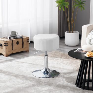 Опис WOLTU Пуф для макіяжу, круглий барний стілець, регульований по висоті, обертовий, офісний, кухонний, м'який, велюровий, білий