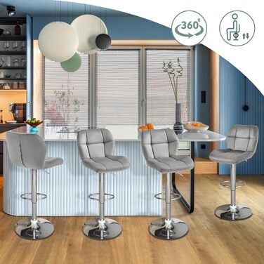 Опис Набір з 2 барних стільців Yaheetech, обертові та регульовані по висоті (62,5–84,5 см), м'які полицеві сидіння 360°, для кухні, бару, салону, їдальні, світло-сірі