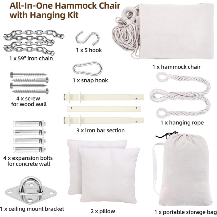 Опис Підвісне крісло Ohuhu XL з 2 подушками та комплектом кріплень, до 150 кг, для дорослих і дівчат, для дому та саду, бежеве