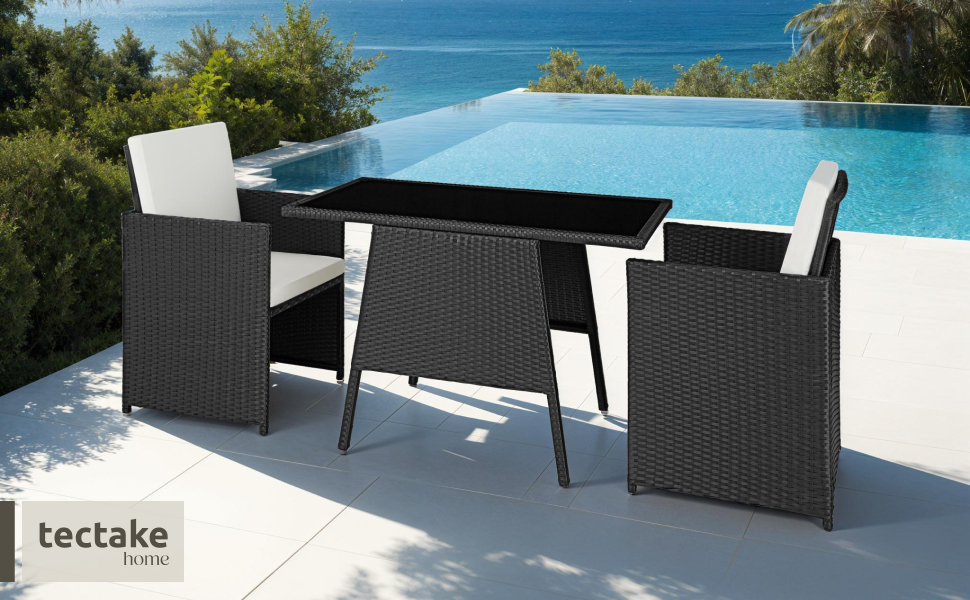 Опис Комплект садових меблів tectake з поліротангу для 2 осіб: 2 крісла та стіл, компактний, чорний, для балкона, тераси, саду, стійкий до погодних умов