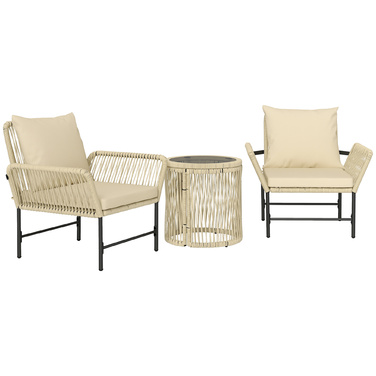 Опис Набір садових меблів Outsunny з полі ротанга, балконні меблі для відпочинку на відкритому повітрі для 2 осіб, група з 3 місць для сидіння з 2 стільцями, подушка для сидіння приставного столика, стійка до погодних умов садова кімната для саду, балкона, хак