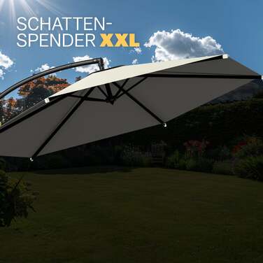 Цей елегантний садовий парасоль з нержавіючого алюмінію має діаметр 330 см, є міцним та завдяки легкому механізму відкривання дуже простий у використанні. Кут нахилу регулюється плавно, а парасольку також можна відхилити вбік – для оптимального затінення. Тканина забезпечує надійний захист від ультрафіолету 80+ та є водовідштовхувальною. Парасоль стабільно стоїть на хрестовині (для кріплення звичайними бетонними плитами) та може бути розміщена будь-де, займаючи мало місця. Завдяки отвору у верхній частині парасольки забезпечується ще більша стійкість, оскільки повітря, що надходить, може виходити вгору. Таким чином, навіть у погану погоду парасоль залишається стійкою та безпечною. У комплекті постачається відповідний захисний чохол. А також фіксатор від вітру, який забезпечує стабілізацію парасольки навіть при сильному вітрі. Ідеальний захист від сонця у вашому саду!