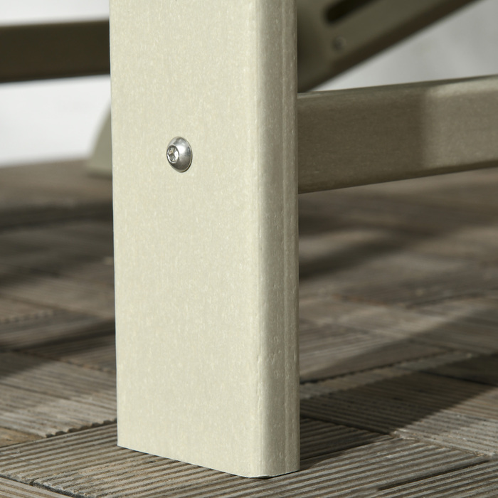 Насолоджуйтесь цілим днем у вашому саду з цим комплектом шезлонгів від Outsunny. Цей садова крісло для тераси має високу спинку, широкі підлокітники та щедру сидіння, висувну підставку для ніг та відповідний столик – для стильного та комфортного відпочинку. Це крісло ідеально підходить для веранди, тераси або біля басейну, пропонуючи безліч можливостей для відпочинку на відкритому повітрі. Відкиньтеся назад і насолоджуйтеся прекрасною природою навколо вас з цим садовим кріслом від Outsunny.Опис:✔ Виготовлено з рами з нержавіючого HDPE-пластику, яка досить міцна, щоб витримати будь-які погодні умови✔ Висока спинка, широкі підлокітники та щедра сидіння запрошують до відпочинку та дрімоти✔ Вбудована, висувна підставка для ніг забезпечує чудову підтримку для ваших відпочиваючих ніг✔ Приставний столик ідеально підходить для розміщення напоїв або дрібних предметів✔ Конструкція з ламелей запобігає накопиченню води✔ Ідеально підходить для використання на веранді, терасі, біля басейну або в інших зовнішніх зонах✔ Потрібне складанняТехнічні характеристики:✔ Колір: Пісочний✔ Матеріал: HDPE✔ Загальні розміри: 78Д x 82/135Ш x 95В✔ Розміри сидіння: 56Ш x 45Г см✔ Розміри спинки: 74Д x 52Ш см✔ Розміри приставного столика: 44Д x 33Ш x 42В см✔ Висота сидіння спереду: 42 см✔ Максимальне навантаження: 120 кг (сидіння), 15 кг (підставка для ніг), 30 кг (столик)Комплектація:✔ 1 x Крісло Adirondack✔ 1 x Приставний столик✔ 1 x Інструкція з монтажуЕргономічний дизайн: Цей зручний, ергономічно розроблений садовий комплект з крісел має злегка підняту спинку, широкі підлокітники, похилу високу спинку та велике сидіння, щоб забезпечити стильний та комфортний відпочинок на вашому газоні, біля басейну, в зоні плавання або на веранді.Зручність і практичність: Ці зручні садові крісла прикрасять будь-який зовнішній простір. Ви можете розмістити на столі напої, книги та закуски, сісти на крісло та покласти ноги на підставку для ніг, щоб насолодитися сонцем і свіжим повітрям. Складані садові меблі підійдуть до будь-якого існуючого інтер'єру.Складаний дизайн: У цьому шезлонгу вбудована складна підставка для ніг. У розкладеному вигляді вона забезпечує додатковий комфорт для відпочинку. У неробочий час підставку для ніг можна скласти.Міцна конструкція: Цей сучасний шезлонг виготовлений з атмосферостійкого та стійкого до вицвітання пластику. Цей матеріал більш довговічний, ніж масивна деревина.Розміри продукту: 78Д x 82/135Ш x 95В. Розміри приставного столика: 44Д x 33Ш x 42В см. Максимальне навантаження: 120 кг (сидіння), 15 кг (підставка для ніг), 30 кг (столик). Потрібне складання.